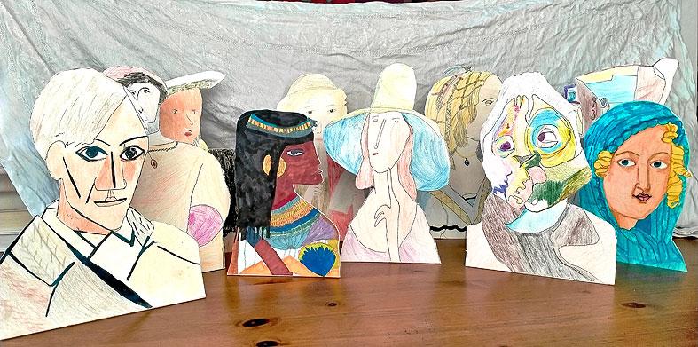 Les petits artistes de la Mjc de Montmeyran, ont chacun choisi un personnage peint et l'on extrait de son célèbre tableau en le reproduisant le plus fidèlement possible. On peut donc citer la Vénus quittant le tableau de Botticelli; François Ier celui d'Hans Holbein; Yvette abandonnant Picasso... Mais où vont-ils ? Après leur première évasion, ils sont soutenus par du carton-plume collé dans leur dos, pour être placés devant un autre célèbre tableau, également reproduit et choisi par les petits artistes.